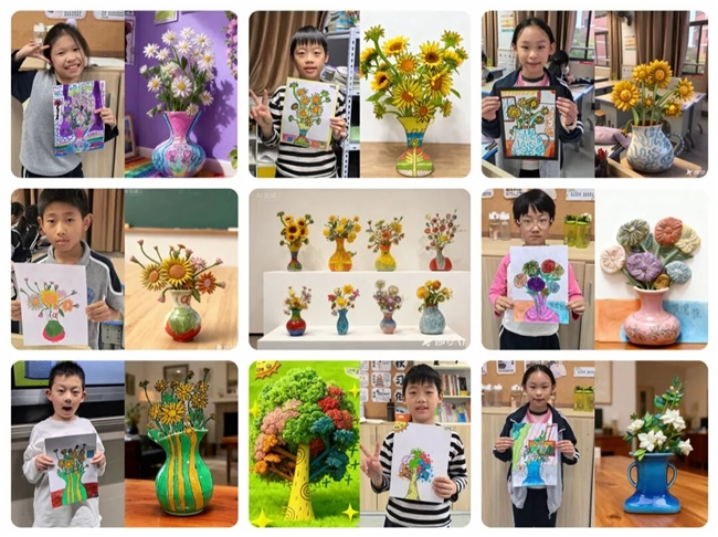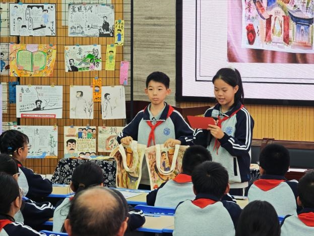 近期开展的六年级鲁迅实践周活动同样令人印象深刻——围绕“我眼中的鲁迅”这一主题,融合多学科知识,通过鲁迅漫画形象设计、时空博物馆、文创制作及AI互动等形式,呈现出一场形式新颖、内容丰富的实践教育成果展。“孩子们的文创作品布袋、书签和剪贴本惹得参观的老师们争相传阅收藏。”何楼自豪地说。